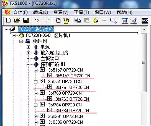 在調試軟件上看,每一個感煙探測器OP720下面都有一個通道,如圖